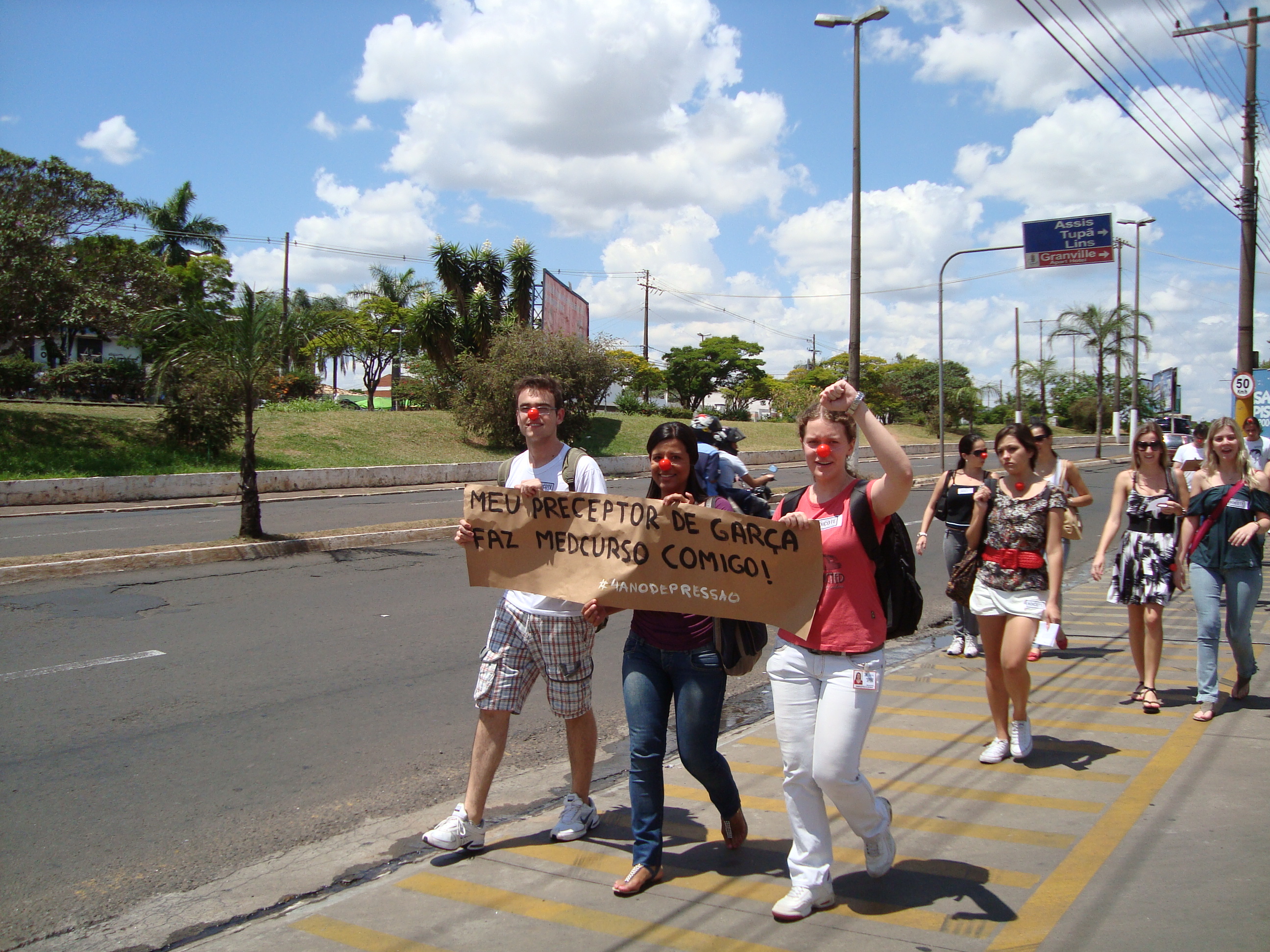 Na manhã de hoje os alunos da medicina não satisfeitos com a inércia da Coordenadoria do Curso de Medicina, que insiste em manter o “PBL made in Brasil” a todo e qualquer custo, e ainda serem supervisionados por profissionais de saúde da rede básica, que sequer fizeram Residência Médica, mas que agora passaram a ser os “professores colaboradores”, provocou uma marcha pelas ruas da cidade de Marília contra a metodologia implementada na instituição
